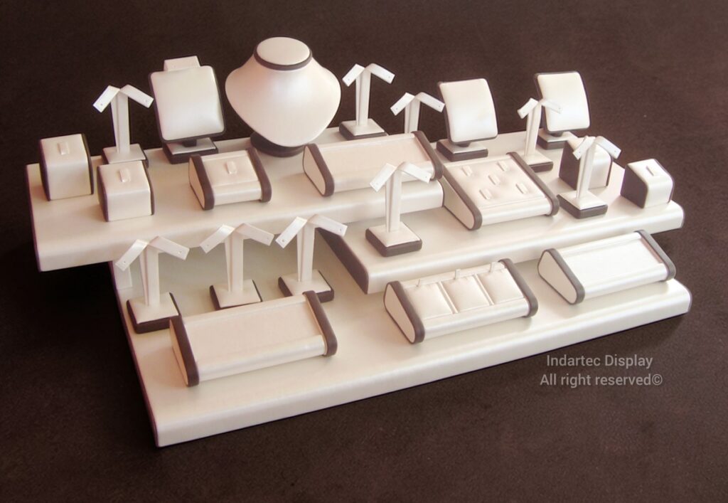 Back in 2010, he reached out to us through an online classified ad and sent a photo of a complete jewelry display set. There were no specific details for the individual pieces—only the general dimensions of the area to be covered. We developed the prototype and delivered it to him.